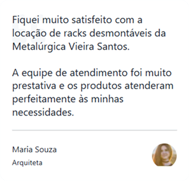 Nossos clientes confiam em nós para fornecer soluções de armazenamento eficientes e seguras para seus armazéns industriais. Leia o que eles têm a dizer sobre como nossos produtos ajudaram a melhorar suas operações de armazenamento.